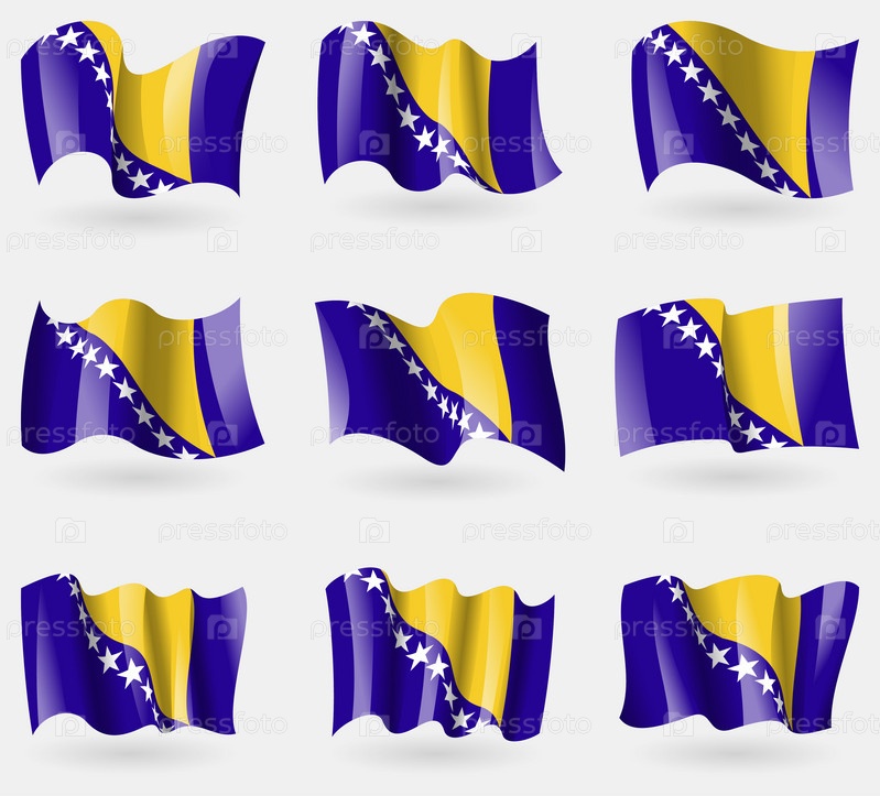 Набор флагов Боснии и Герцеговины в воздухе. Вектор