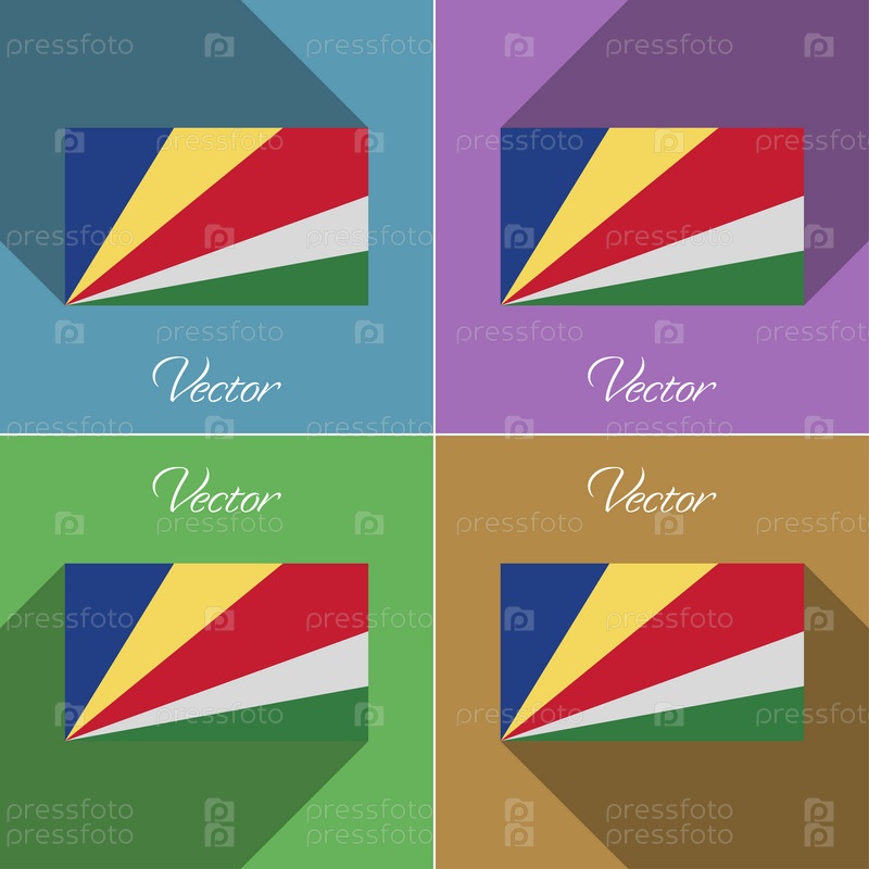Флаги, Сейшельские острова. Набор цветов плоский дизайн и длинные тени. Вектор