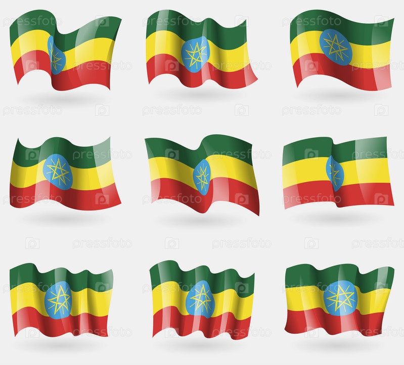 Набор флагов Эфиопии в воздухе. Вектор