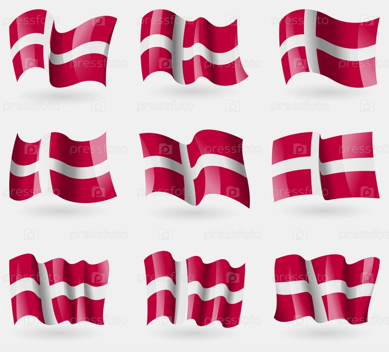 Набор флагов Дании в воздухе. Вектор