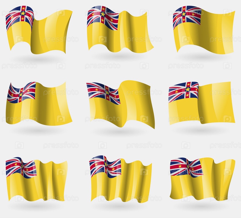 Набор флагов Ниуэ в воздухе. Вектор