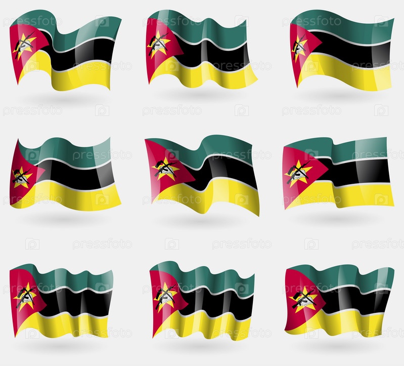 Набор флагов, Мозамбик в воздухе. Вектор