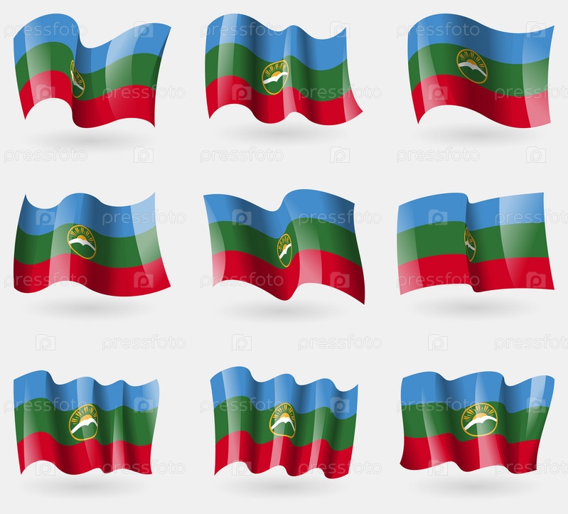Набор флагов Карачаево-Черкессия в воздухе. Вектор