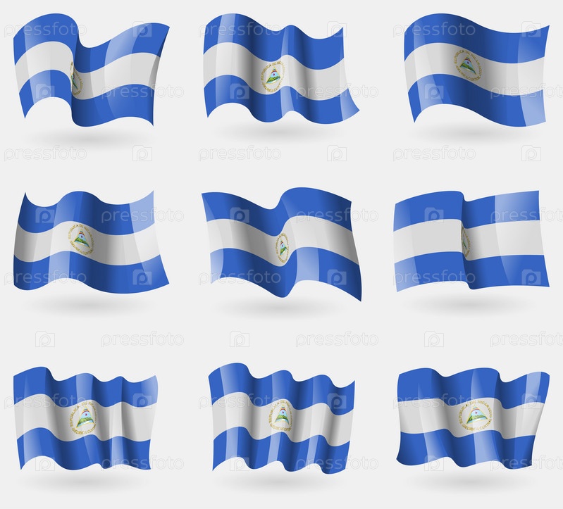 Набор флагов, Никарагуа в воздухе. Вектор