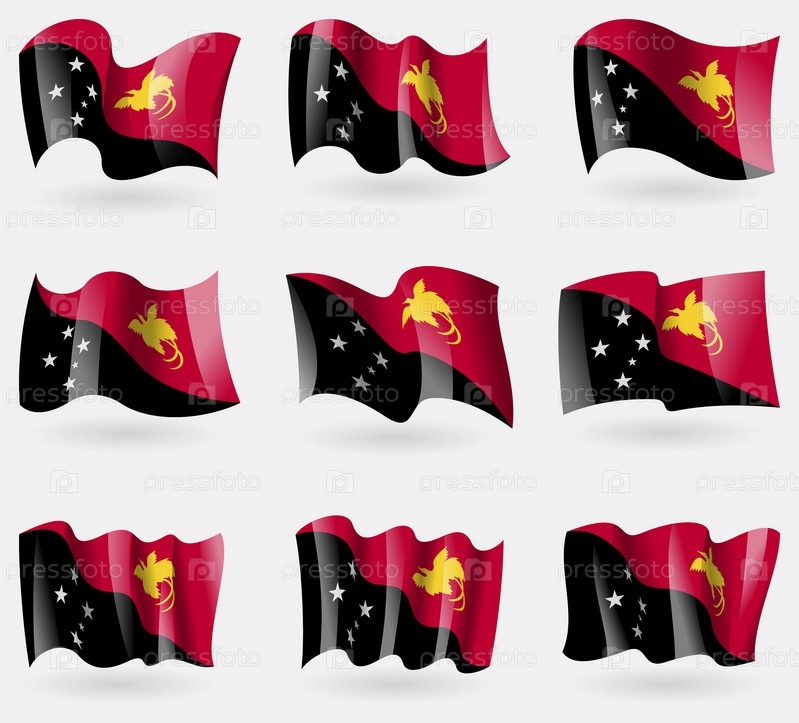Набор флагов Папуа-Новая Гвинея в воздухе. Вектор
