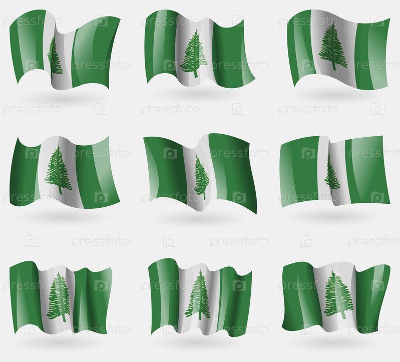 Набор флагов остров Норфолк в воздухе. Вектор