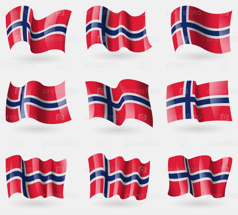 Набор флагов Норвегии в воздухе. Вектор