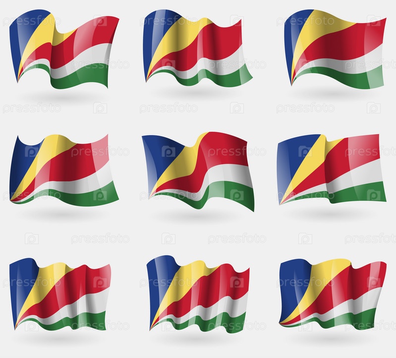 Набор флагов Сейшельских островов в воздухе. Вектор