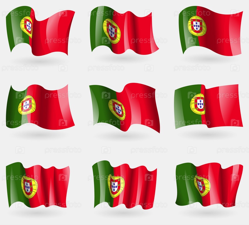 Набор флагов Португалии в воздухе. Вектор
