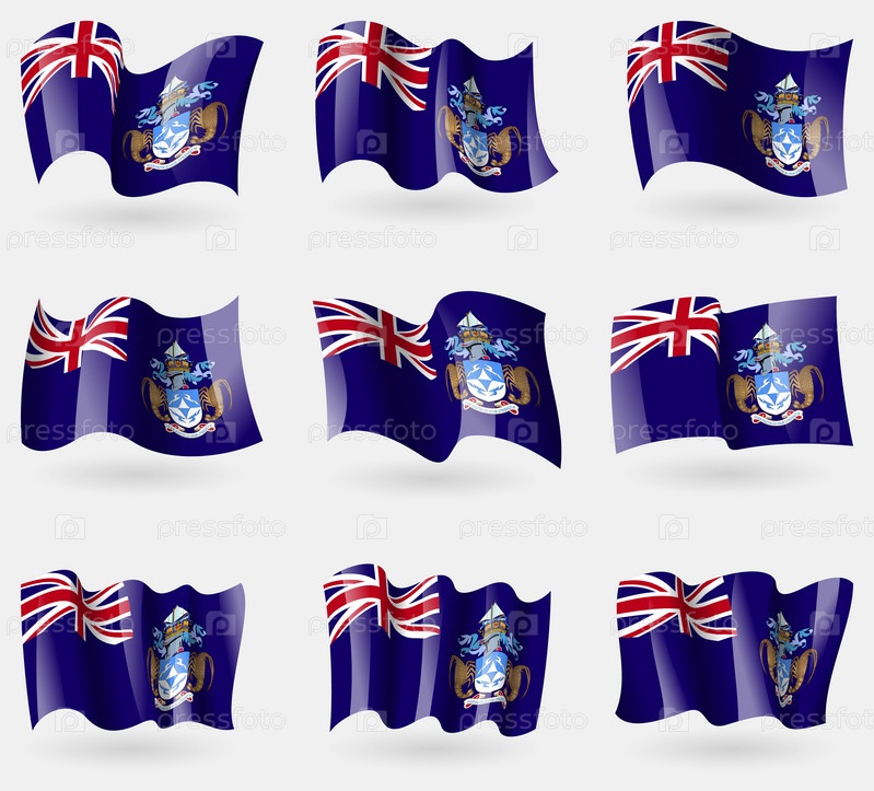 Набор флагов Тристан-да-Кунья в воздухе. Вектор