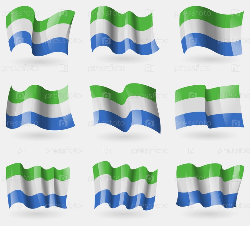 Набор флагов Сьерра Леоне в воздухе. Вектор