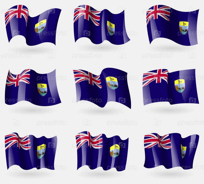 Набор флагов Святой Елены в воздухе. Вектор