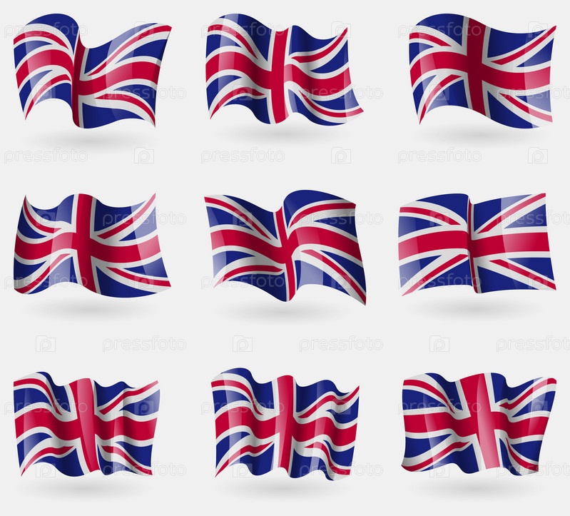 Набор флагов Соединенного Королевства в воздухе. Вектор