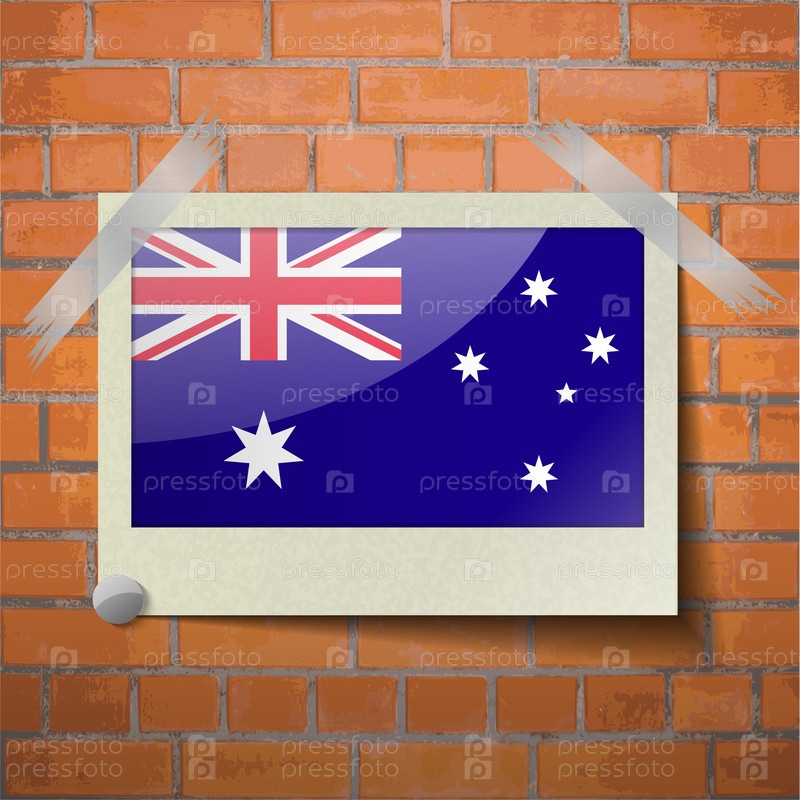 Флаги Австралии, скотч приклеенный к красной кирпичной стены