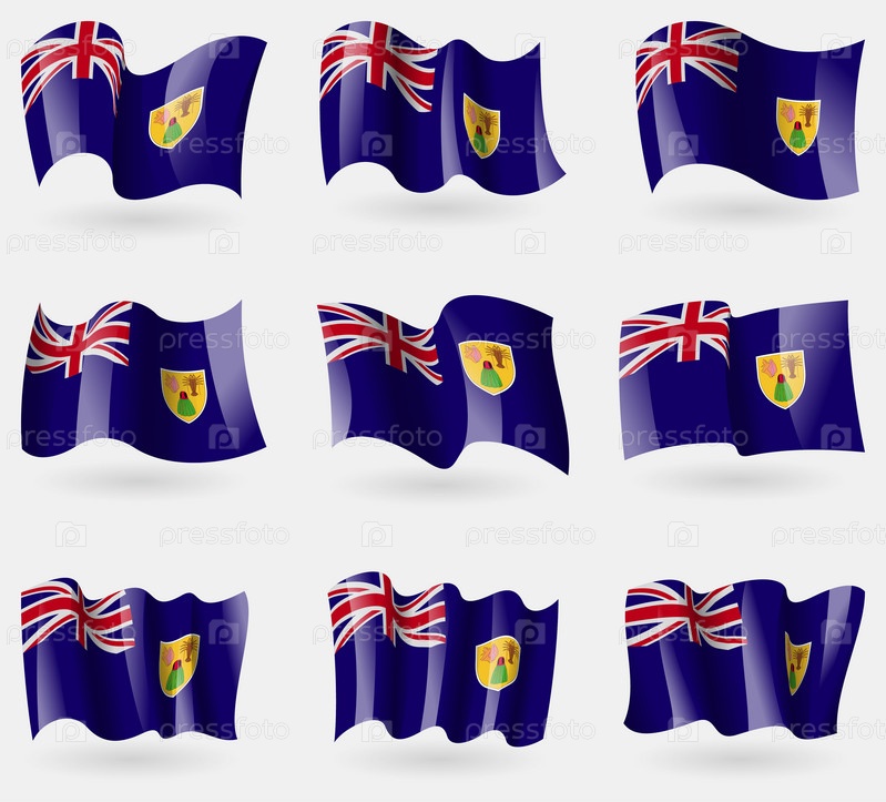 Набор флагов Теркс и Кайкос в воздухе. Вектор