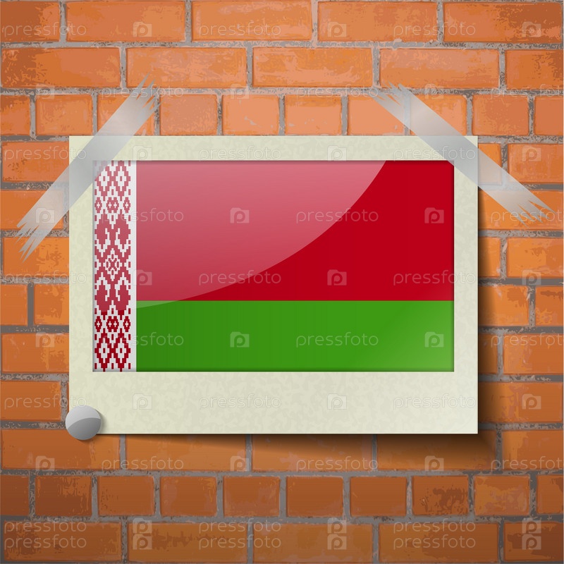 Флаги Беларуси, скотч приклеенный к красной кирпичной стены