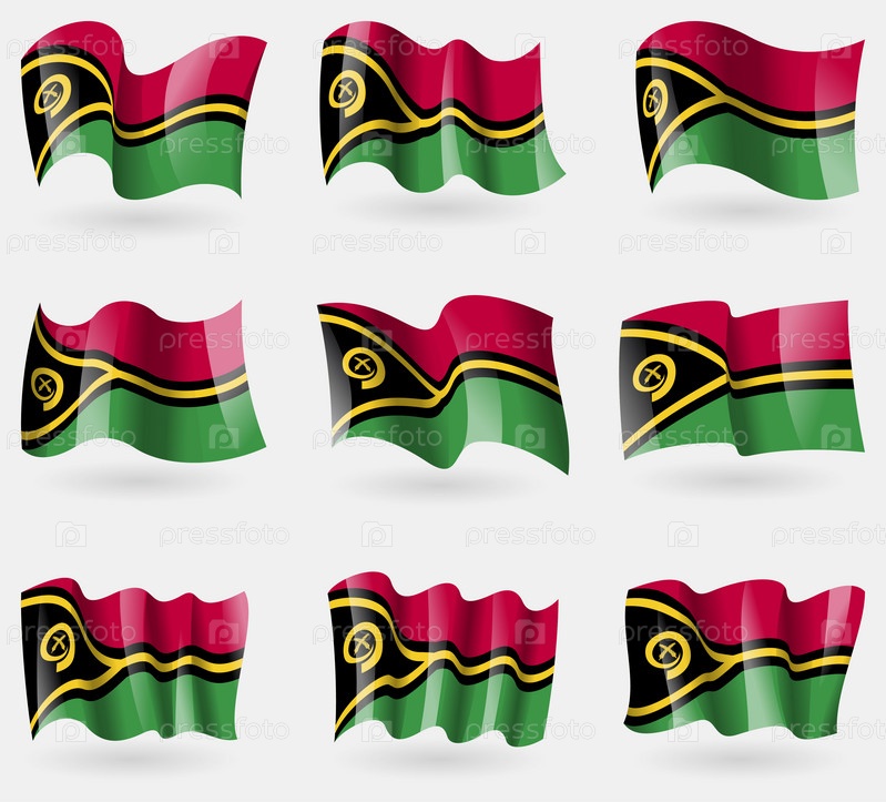 Набор флагов Вануату в воздухе. Вектор