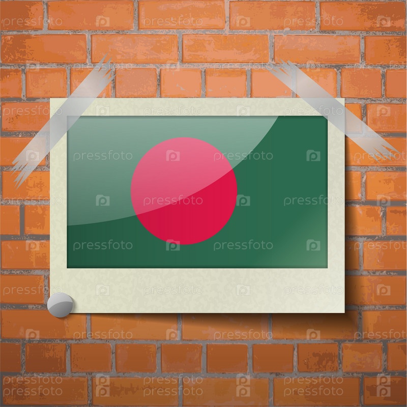 Флаги Бангладеш, скотч приклеенный к красной кирпичной стены