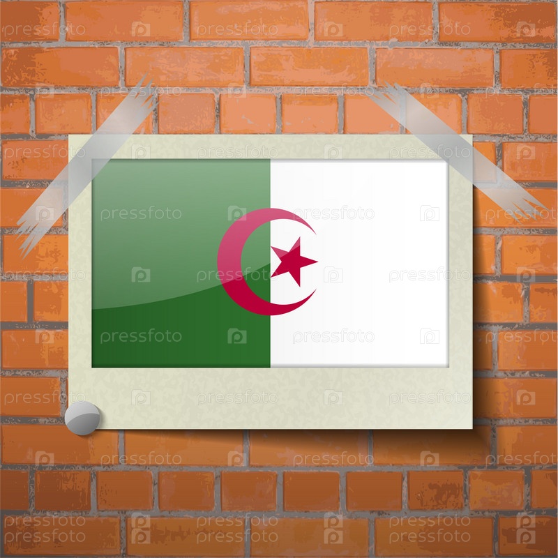 Флаги Алжир, скотч приклеенный к красной кирпичной стены