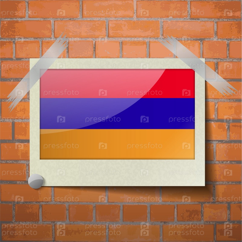 Флаги Армении, скотч приклеенный к красной кирпичной стены