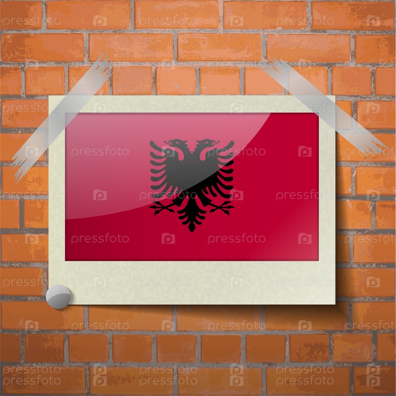 Флаги Албании, скотч приклеенный к красной кирпичной стены