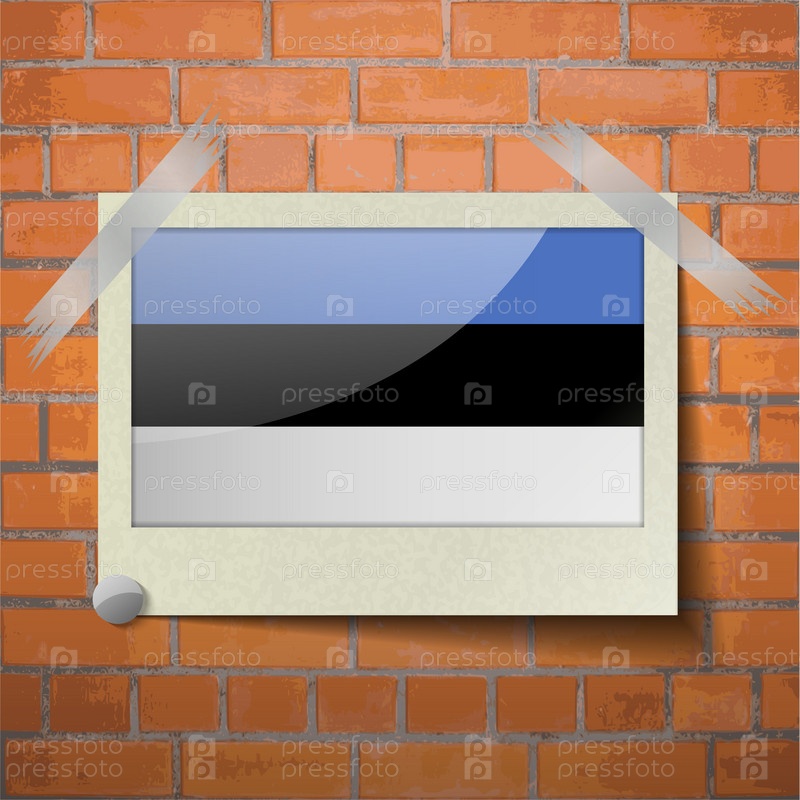 Флаги Эстонии, скотч приклеенный к красной кирпичной стены