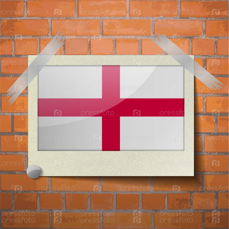 Флаги Англии, скотч приклеенный к красной кирпичной стены