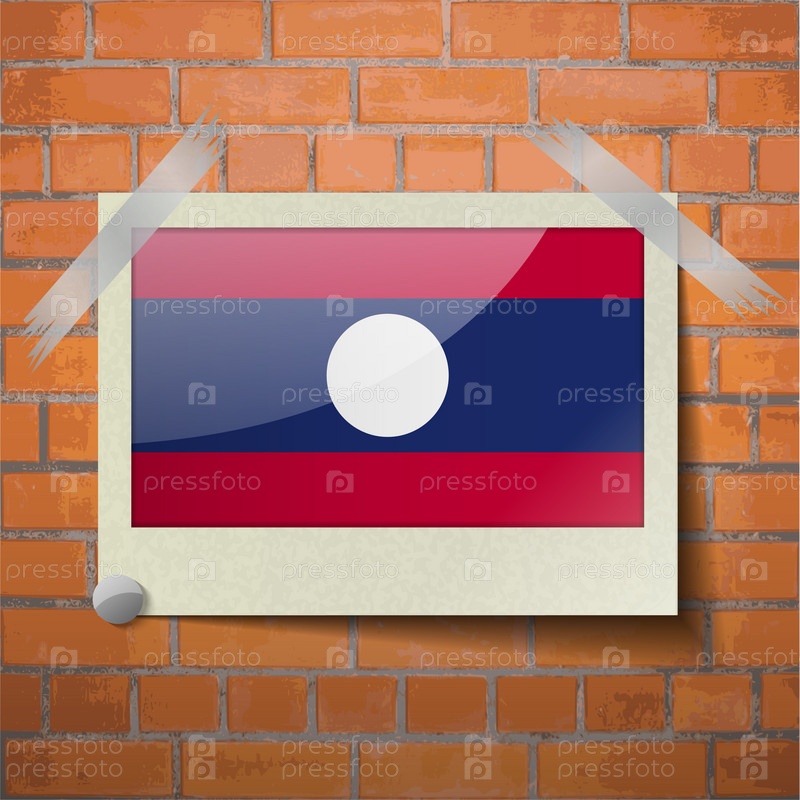 Флаги Лаос, скотч приклеенный к красной кирпичной стены