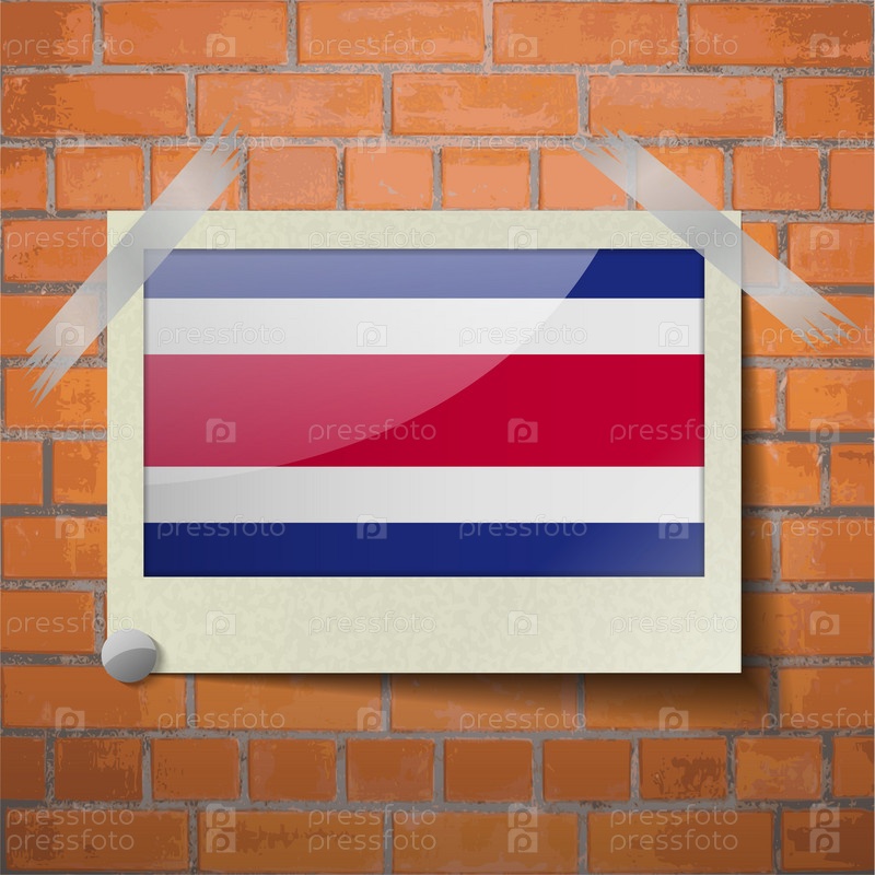 Флаги Коста-Рики, скотч приклеенный к красной кирпичной стены
