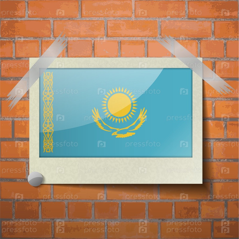 Флаги Казахстан, скотч приклеенный к красной кирпичной стены