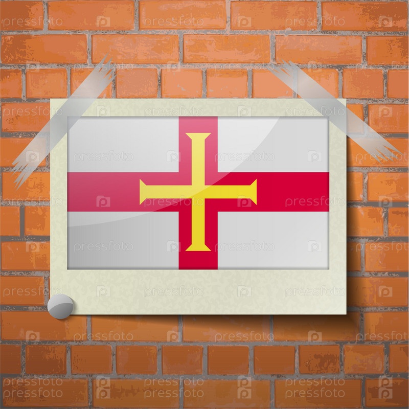 Флаги Гернси, скотч приклеенный к красной кирпичной стены