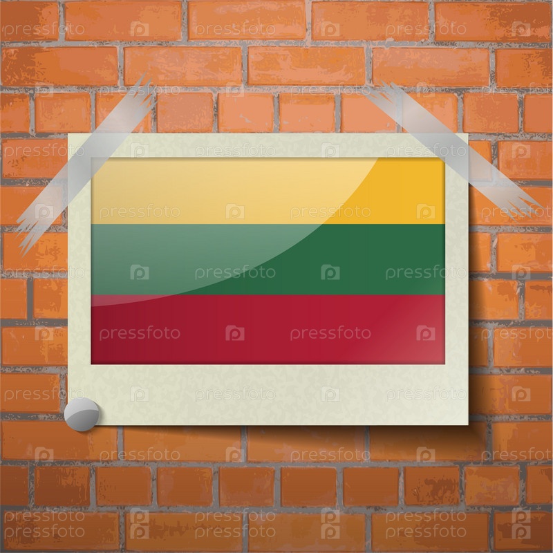 Флаги Литвы, скотч приклеенный к красной кирпичной стены