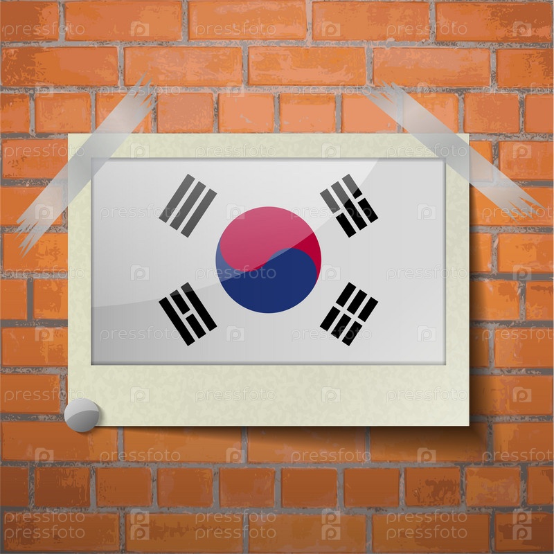 Южная Корея флаги Скотч приклеенный к красной кирпичной стены