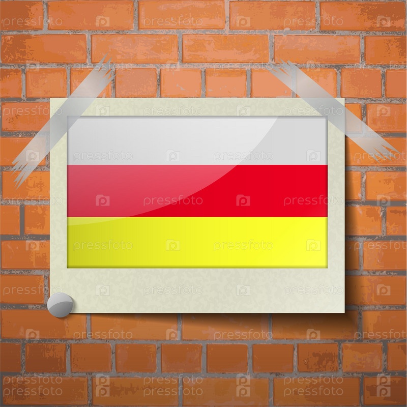 Флаги Северной Осетии, скотч приклеенный к красной кирпичной стены