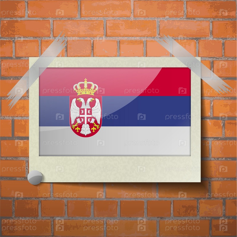 Флаги Сербии, скотч приклеенный к красной кирпичной стены