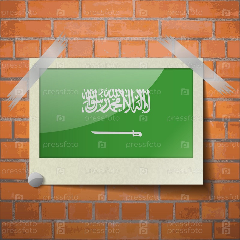 Флаги, Саудовская Аравия, скотч приклеенный к красной кирпичной стены