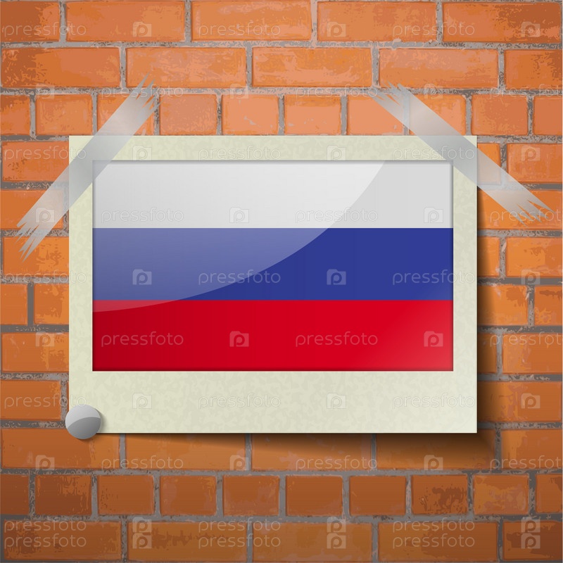 Флаги России, скотч приклеенный к красной кирпичной стены
