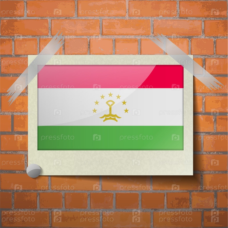 Флаги Таджикистана, скотч приклеенный к красной кирпичной стены