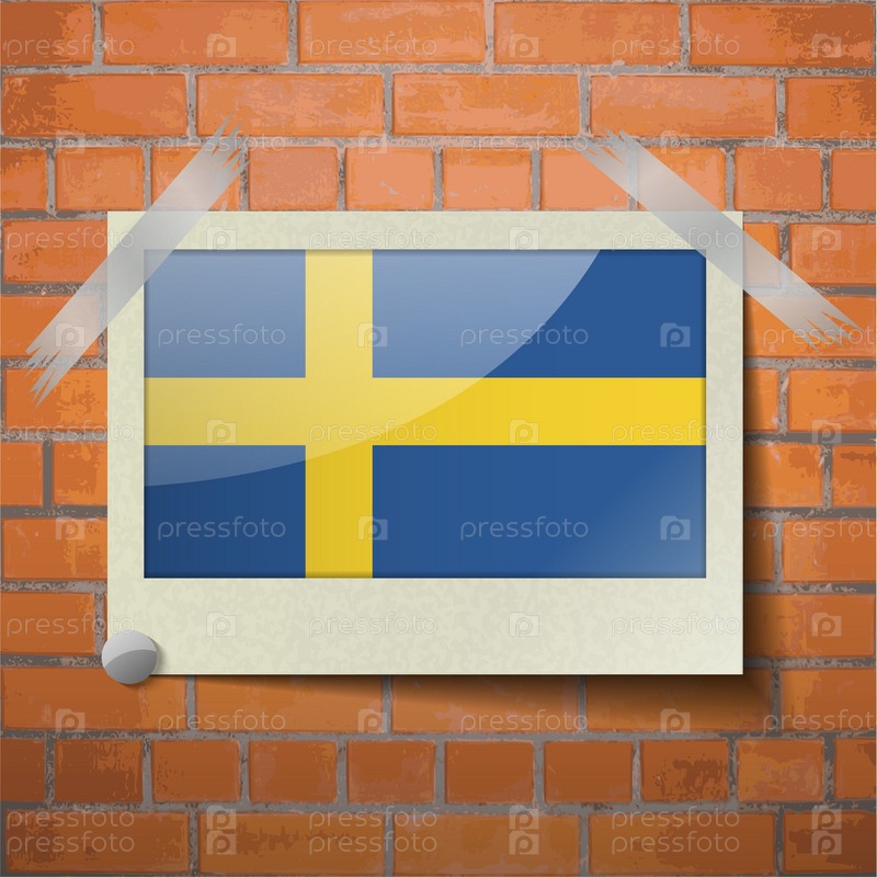 Флаги Швеции, скотч приклеенный к красной кирпичной стены