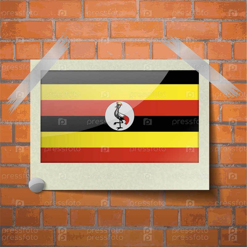 Флаги Уганды, скотч приклеенный к красной кирпичной стены