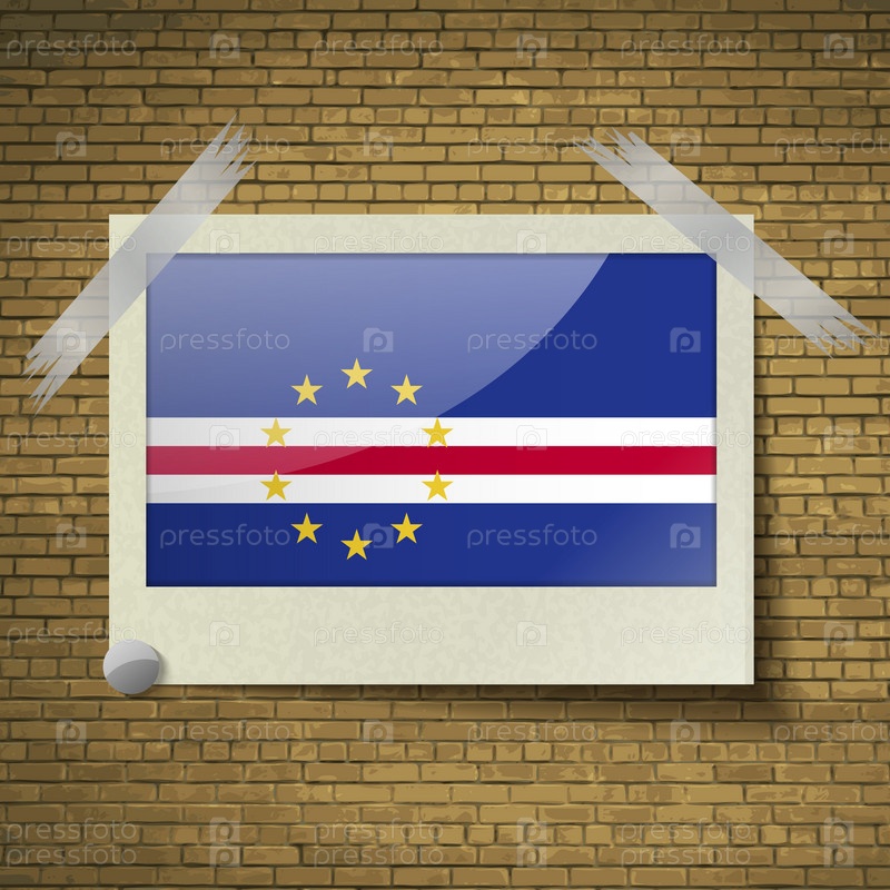 Флаги Кабо-Верде в кадре на фоне кирпича. Вектор