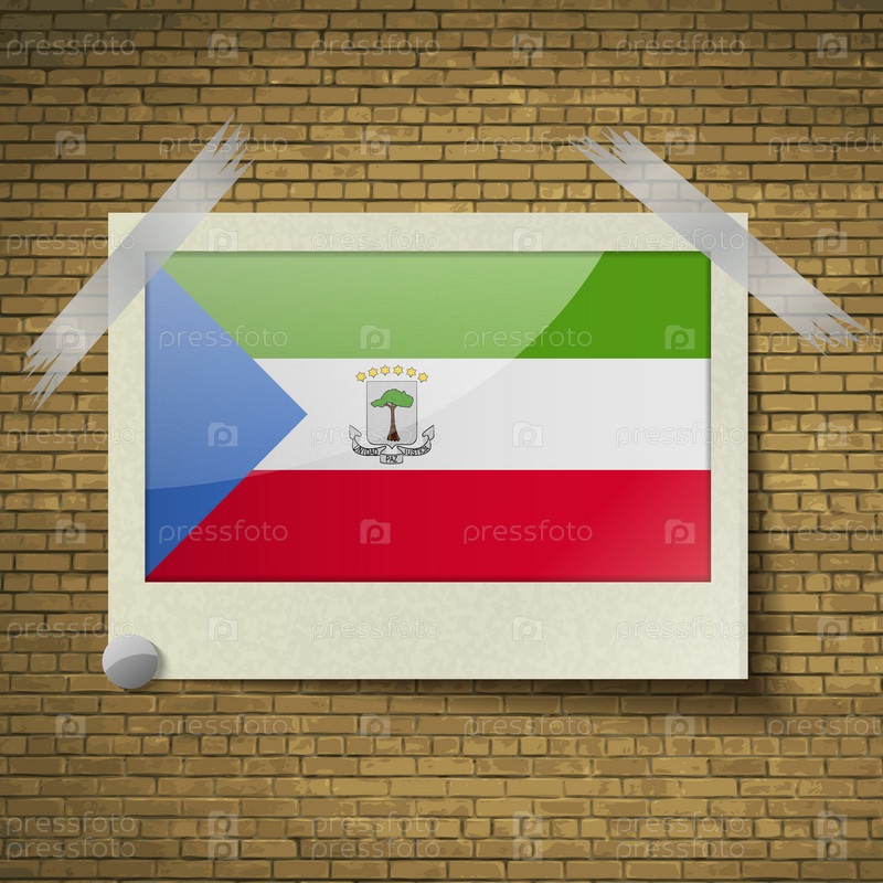 Флаги Экваториальной Гвинеи в кадре на фоне кирпича. Вектор