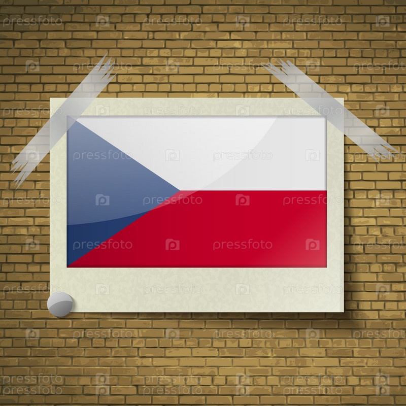 Флаги Чешской Республики в кадре на фоне кирпича. Вектор