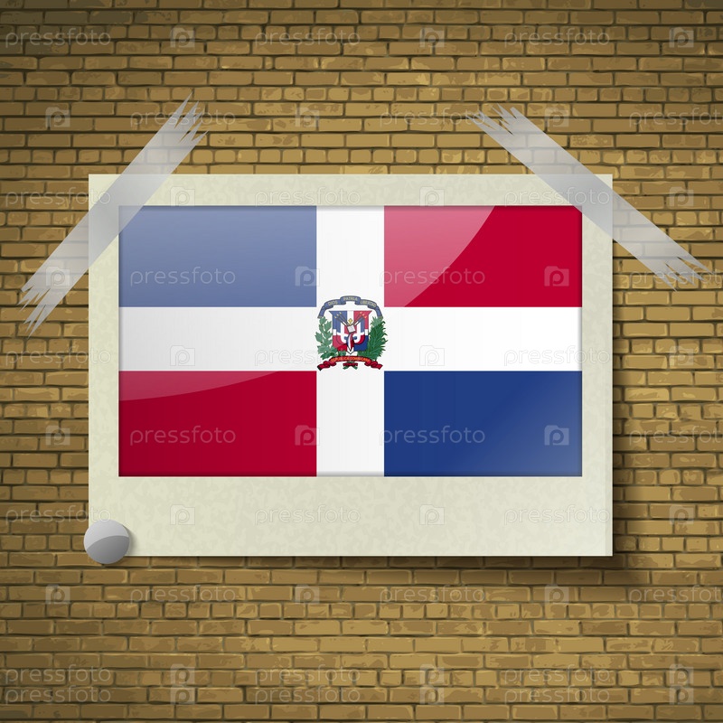 Флаги Доминиканская Республика в кадре на фоне кирпича. Вектор