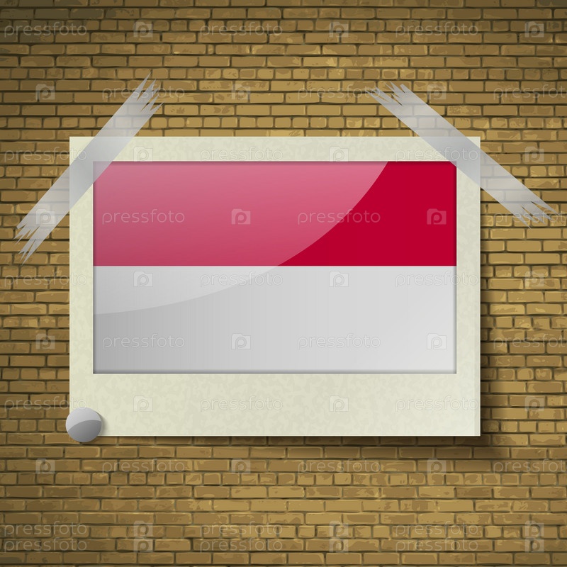 Флаги Индонезии в кадре на фоне кирпича. Вектор