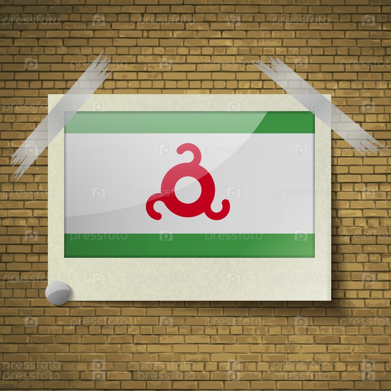 Флаги Ингушетии в кадре на фоне кирпича. Вектор