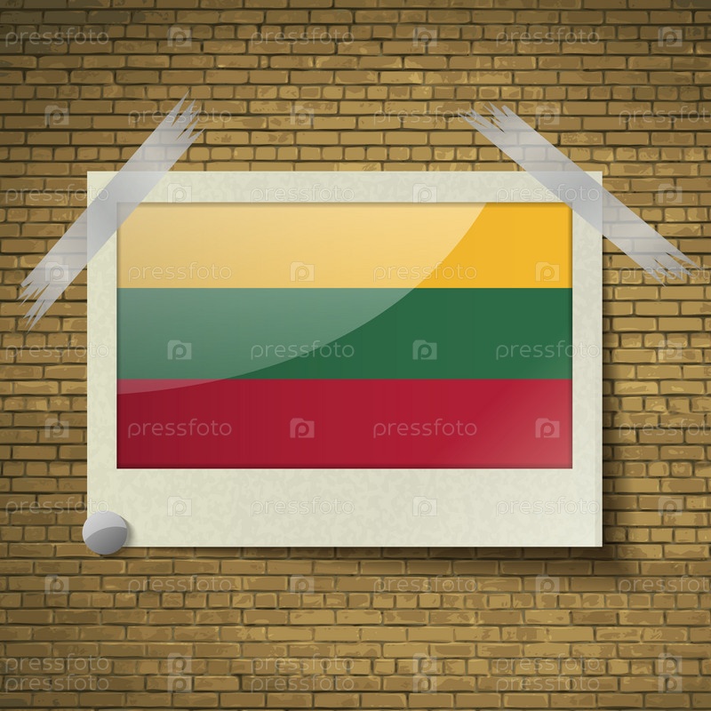 Флаги Литвы в кадре на фоне кирпича. Вектор