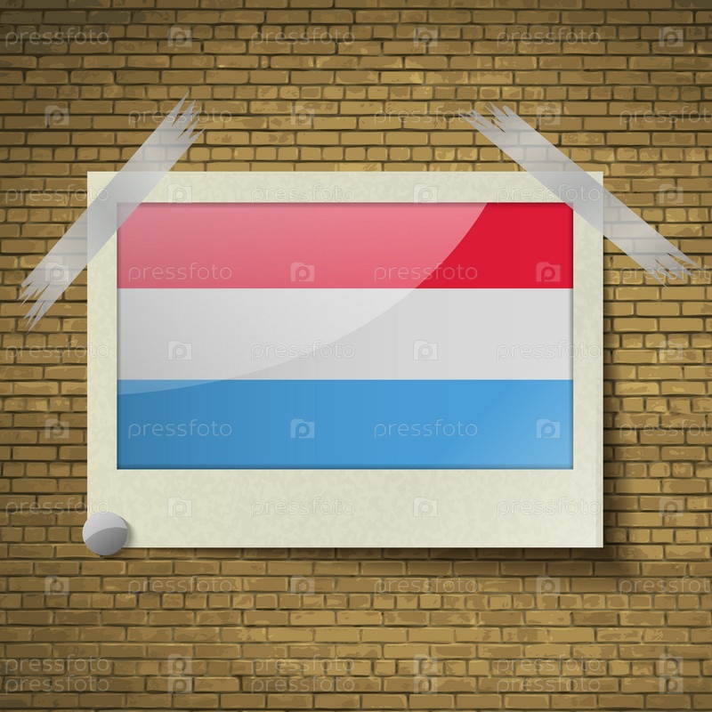 Флаги Люксембурга в кадре на фоне кирпича. Вектор