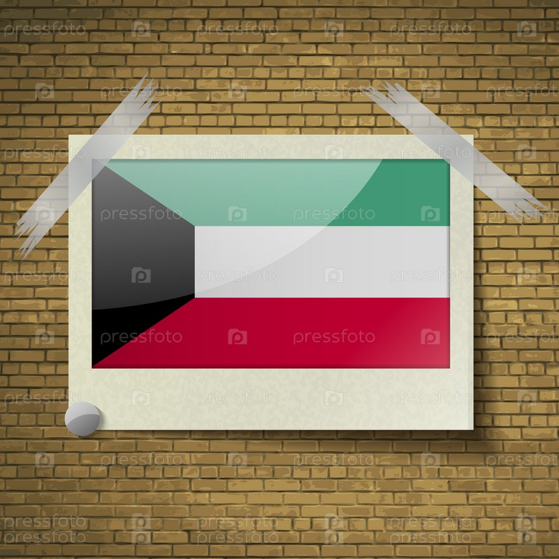 Флаги Кувейта в кадре на фоне кирпича. Вектор