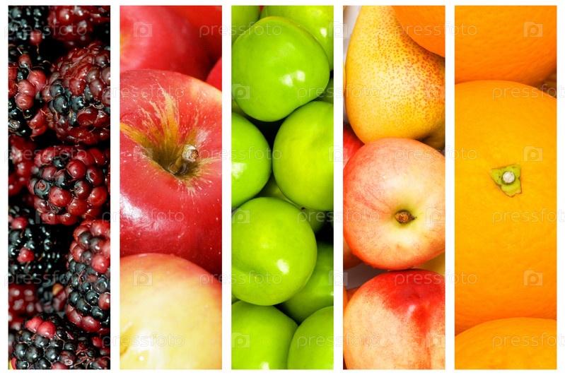Коллаж с различными фруктами и овощами
